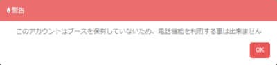 ブースが割りあてられていないユーザーアカウントでログインした場合、警告が表示されます。